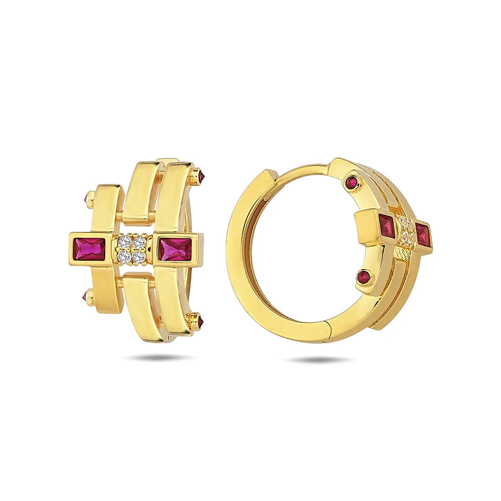 Dve pretínajúce sa línie vytvárajú harmonickú kompozíciu, ktorú zvýrazňujú kubické zirkóny v čírej a červenej farbe.