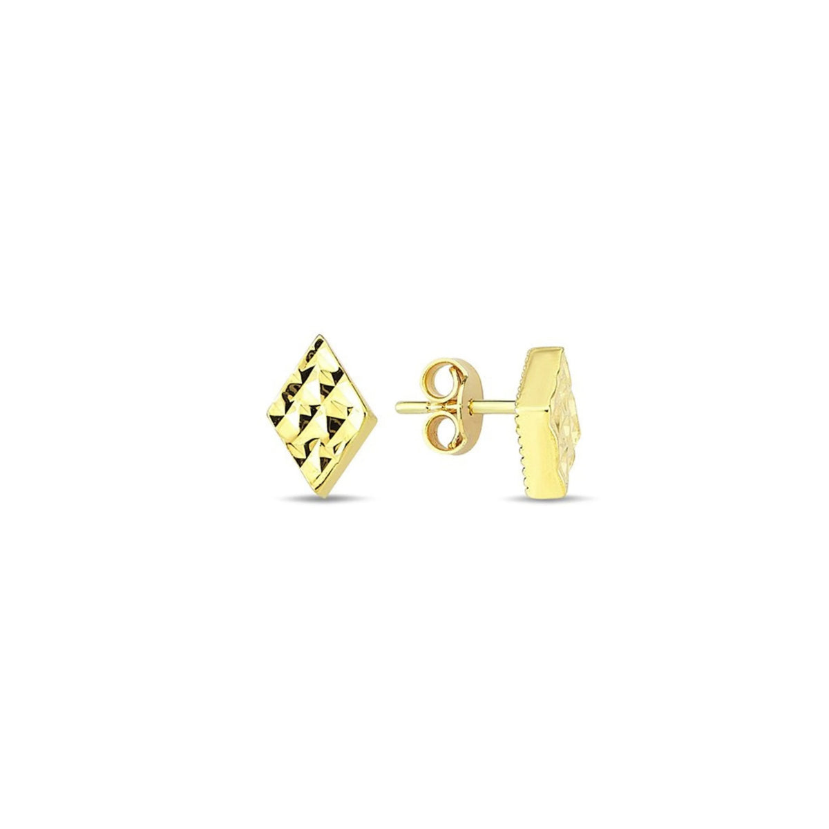 Express your style with modern elegance with the CREYO ASTRA earrings. These 14k yellow gold (585/1000) stud earrings feature a dynamic geometric diamond-shaped design with a finely ground surface that catches the light and creates an interesting effect.