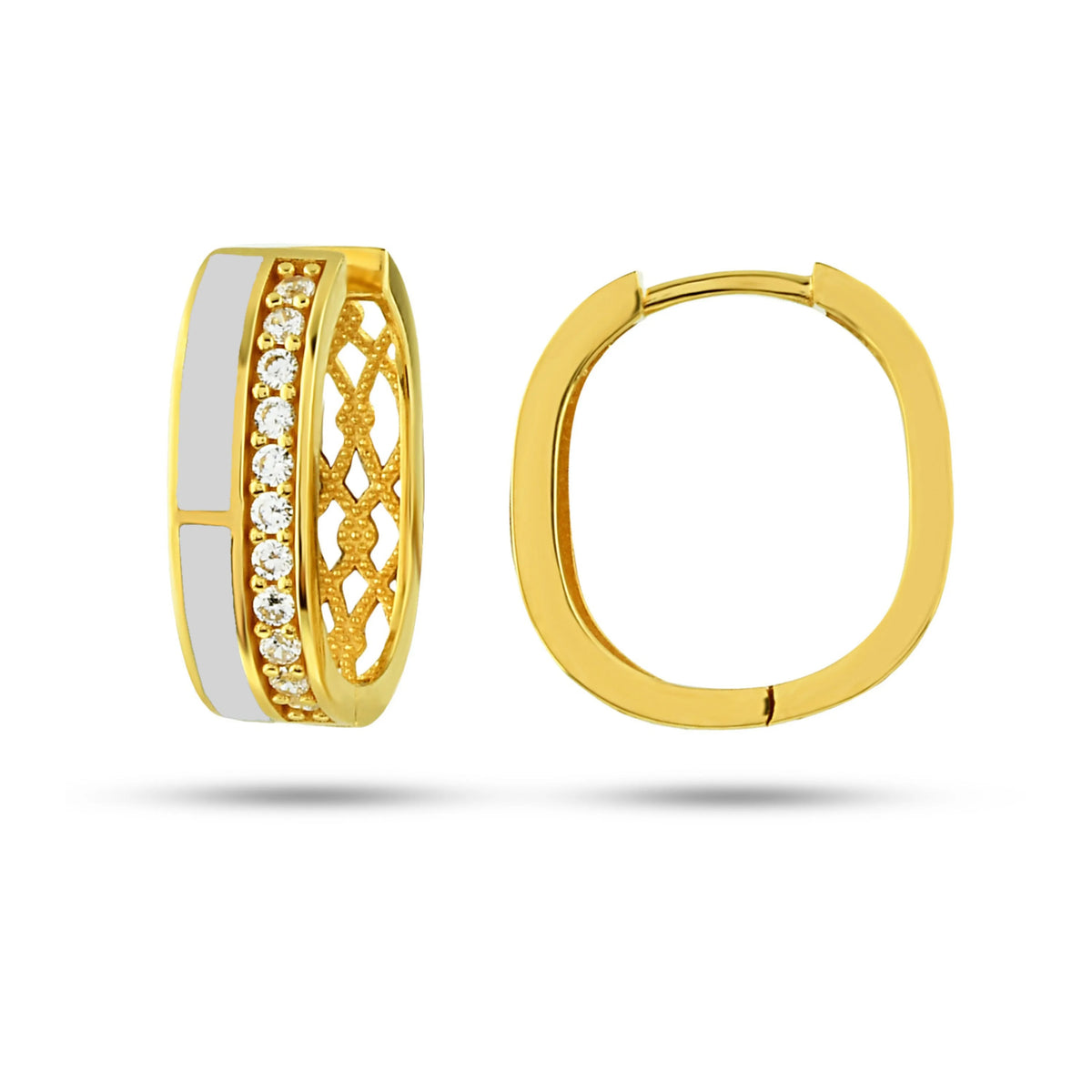 Discover radiant elegance with the CREYO Élégance GEOMETRIC earrings, which combine geometric precision, modern white detailing and the sparkling shine of cubic zirconia. Made of 14k yellow gold weighing 3.90 g, these earrings are the ideal piece of jewelry for special occasions and everyday style with a touch of luxury.
