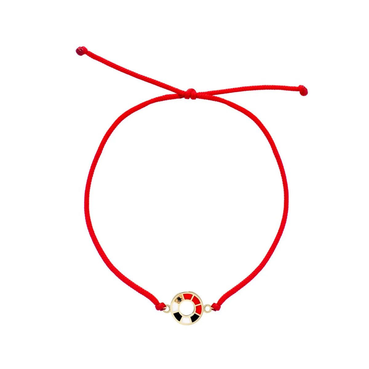 LUNA | Bracelet with symbolic circle and colored enamel on a red string