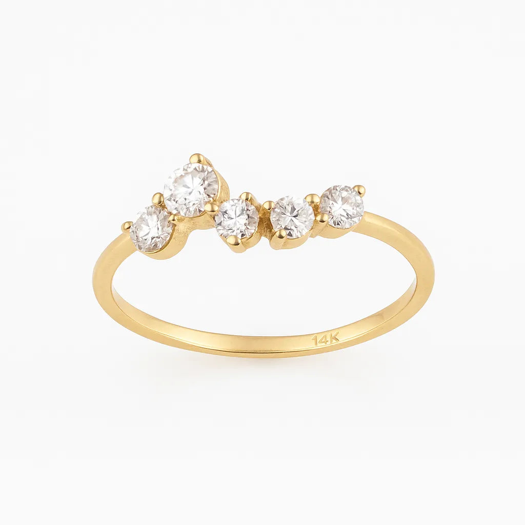DIVINA | Prsteň zo 14K zlata s piatimi žiarivými zirkónmi