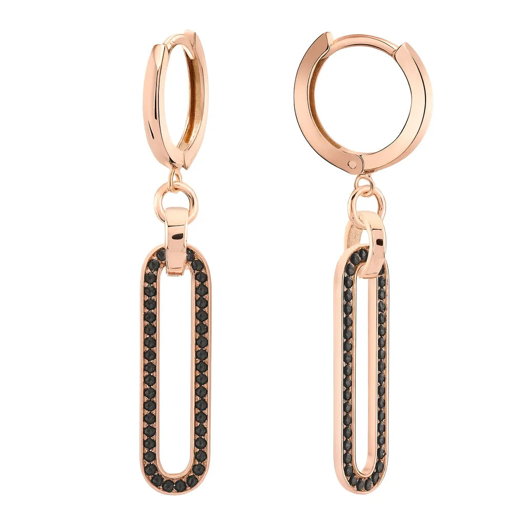 LUNARIA | Visacie náušnice z ružového zlata s čiernymi kameňmi