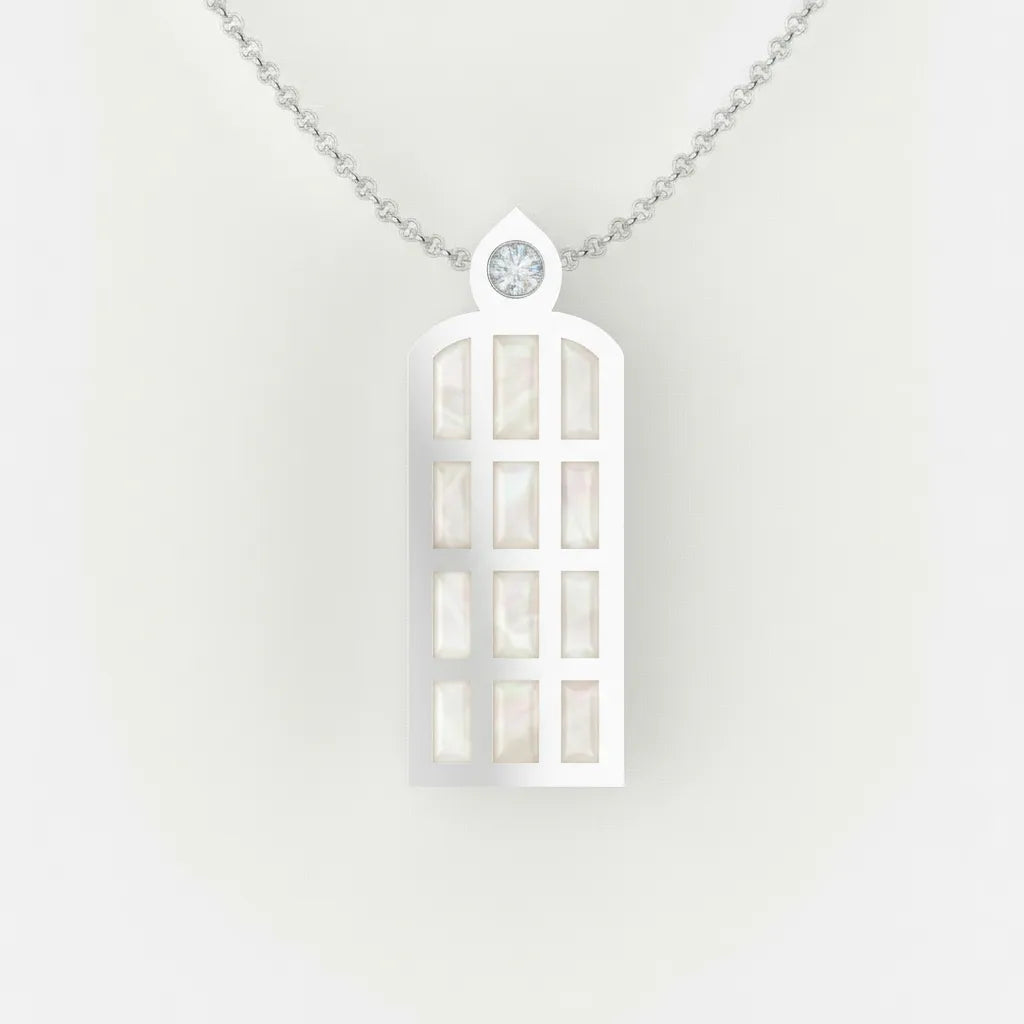 Prívesok je inšpirovaný tvarom gotického okna – symbolom viery, duchovnej harmónie a otvorenosti svetlu.